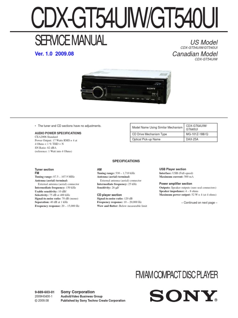 Book, track or maybe even avoid a repair. Disassembly, troubleshooting, programming, maintenance, remote, adjustment, installation and setup instructions. Sony cdx am/fm compact disc player ().